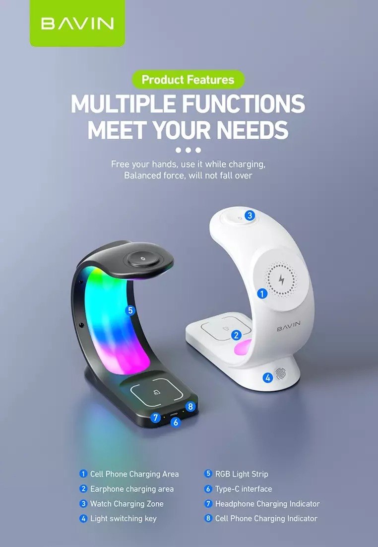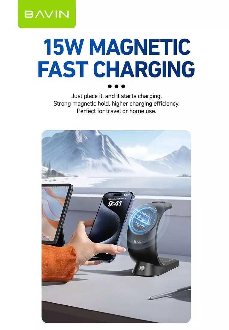 استند و شارژر وایرلس چندکاره باوین Bavin PC1071 توان 15 وات