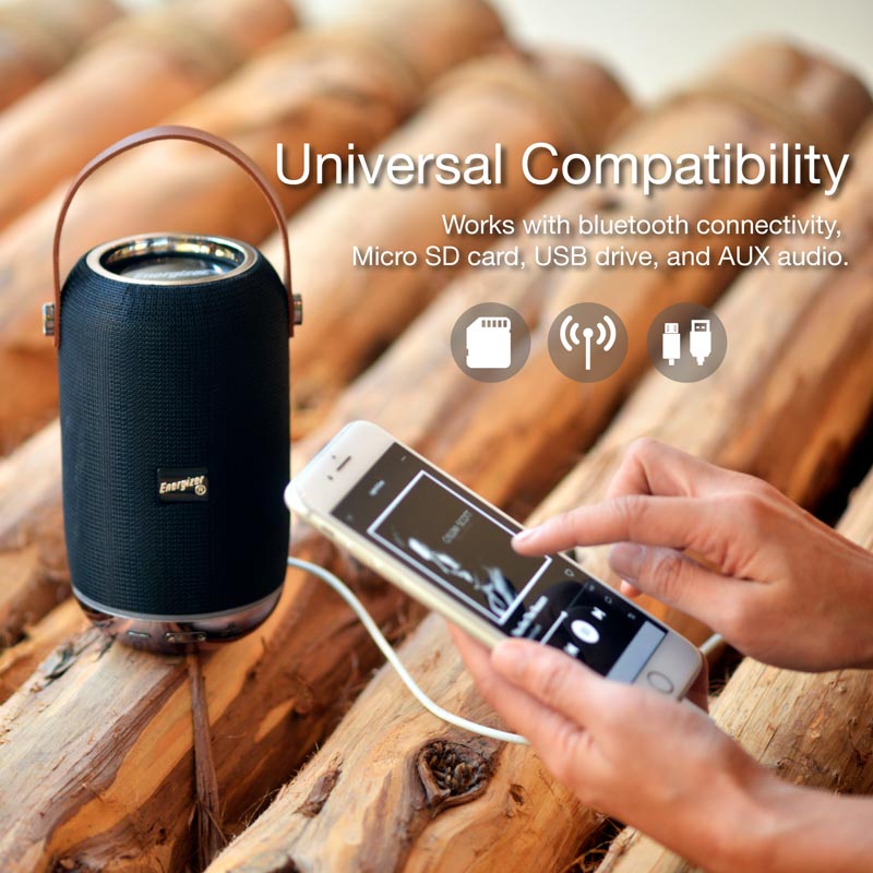 روش اتصال بی سیم برای اسپیکر انرجایزر در نظر گرفته شده که توسط بلوتوث نسخه ۵٫۰ تا شعاع ۱۰ متری به گوشی موبایل، تبلت و دیگر گجت ها متصل می شود. اتصال به صورت باسیم نیز از طریق کابل AUX، رابط جک صوتی ۳٫۵ میلی متری و همچنین ورود رم میکرو SD در شیار کارت حافظه و فلش مموری در پورت USB فراهم شده تا دسترسی بیشتری در پخش مستقیم فایل های صوتی ذخیره شده وجود داشته باشد. اسپیکر بلوتوثی انرجایزر مدل BTS-103 با دو عدد بلندگو به قطر ۵۲ میلی متر و توان خروجی کلی ۱۰ وات قادر است صدایی استریو با وضوح فراگیر و همراه بیس را با تفکیک نت های زیر و بم بر اساس امپدانس ۴ اهم در دامنه فرکانسی ۳۰ هرتز تا ۲۰ کیلوهرتز پخش نماید.