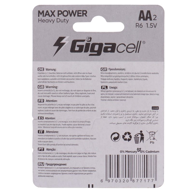 باتری قلمی ۲ تایی گیگاسل مدل Max Power Heavy Duty R6 با ولتاژ ۱٫۵ ولت