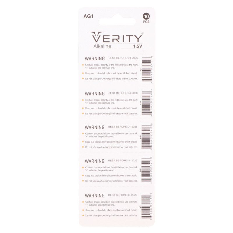 باتری سکه ای Verity Alkaline AG1 بسته ۱۰ عددی