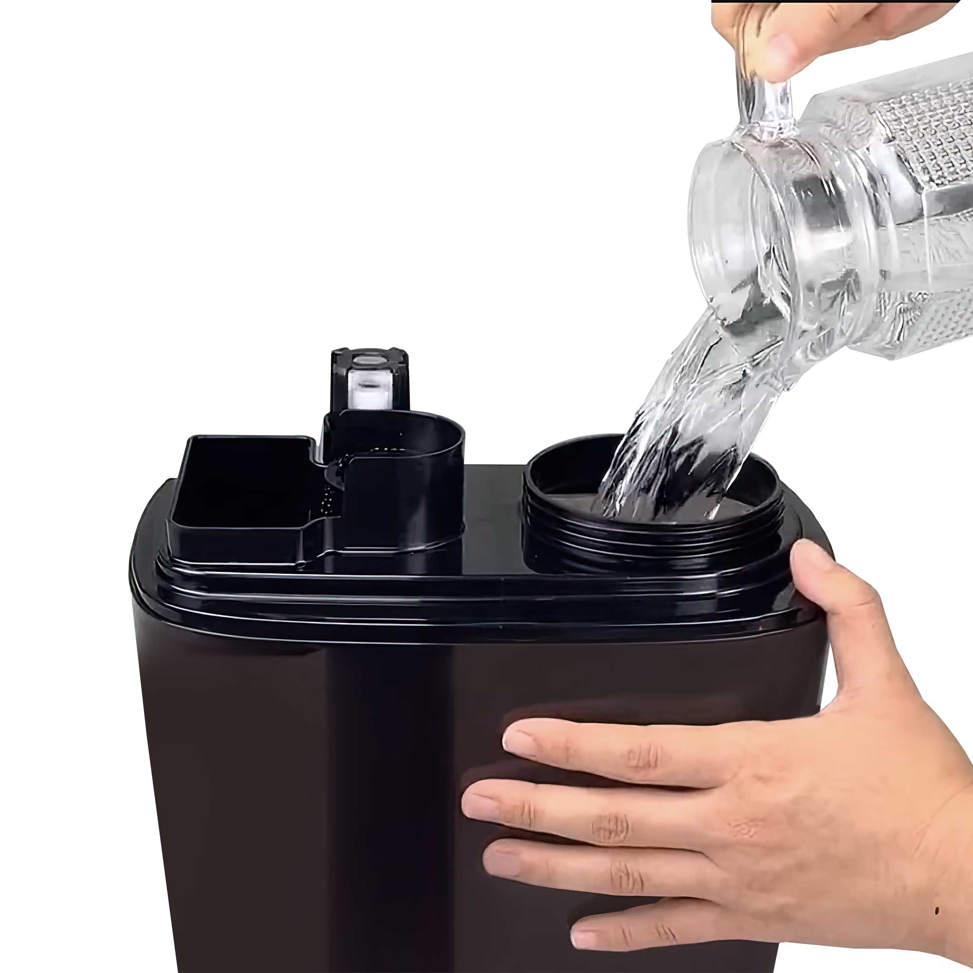 مخزن ۵ لیتری این دستگاه، امکان بخاردهی تا ۱۵ ساعت مداوم را فراهم میکند؛ یعنی بدون نیاز به پر کردن مجدد، میتونی در طول شب یا روز از هوایی مرطوب و دلپذیر بهره ببری. دستگاه در حالت سرد ۳۰۰ میلیلیتر و در حالت گرم ۴۵۰ میلیلیتر در ساعت بخار تولید میکند.