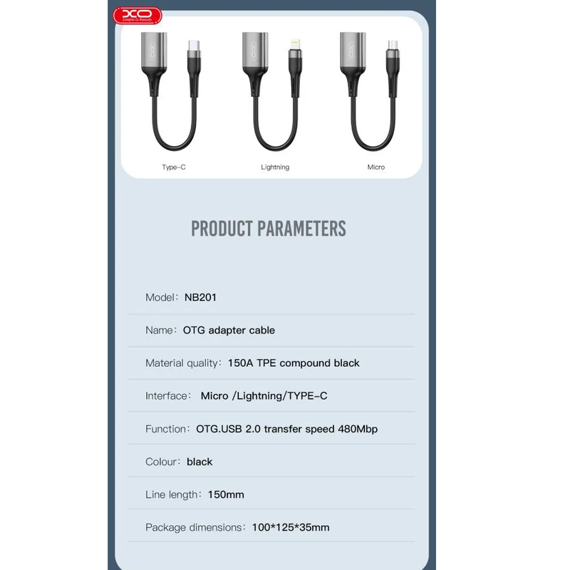 او تی جی ها در واقع تبدیل‌هایی هستند که می‌توانند یکی از درگاه‌های گوشی شما را به USB تبدیل کنند. با درگاه یو اس بی شما می‌توانید به راحتی به انتقال اطلاعات و فایل بپردازید و فلش مموری خود را به گوشی متصل کنید. کمپانی XO با ساخت تبدیل OTG میکرو به USB ایکس او NB201 این امکان را به وجود آورده است تا دیگر برای انتقال اطلاعات به گوشی نیازی به کامپیوتر نداشته باشید.
