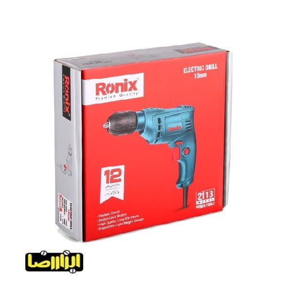 دریل رونیکس مدل 2113 با وزن 1.1 کیلوگرم سبک و کم حجم جهت انجام کلیه کاربریهای نصب در صنایع مختلف فلز و چوب و توان موتور 350 وات میباشد و سرعت این موتور در حالت بیباری بین 0 تا 3100 دور در دقیقه است. این دریل برقی دارای سه نظام اتوماتیک 10 میلیمتر است. از دیگر ویژگیهای دریل رونیکس مدل 2113 میتوان به کلید الکترونیک چپگرد و راستگرد ضد غبار مطابق با استاندارد TUV، آرمیچر و بالشتکهای صنعتی با بالاترین کیفیت سیم پیچی مطابق با استاندارد CE، کلید قفل کن در وضعیت روشن، طراحی جدید و ارگونومیک بدنه جهت سهولت در کاربری و 12 ماه گارانتی اشاره کرد.