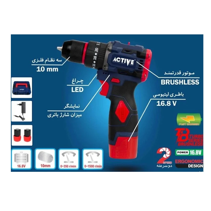 دریل پیچ گوشتی چکشی شارژی اکتیو 16.8 ولت مدل AC-3117BL