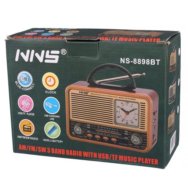 اسپیکر رادیویی بی سیم قابل حمل NNS مدل NS-8898BT ساعت دار