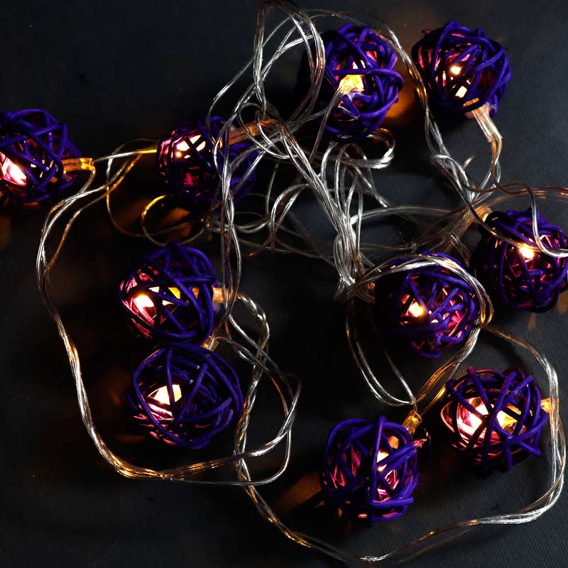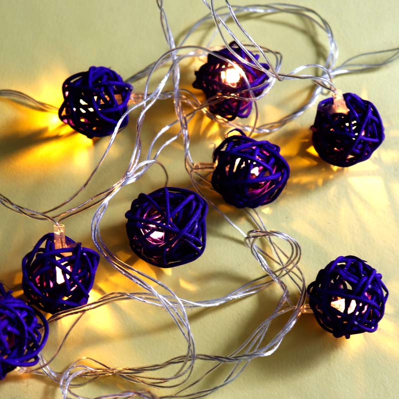 ریسه ۱۰ لامپ طرح گوی چوبی بنفش آفتابی ۲۵۰Cm