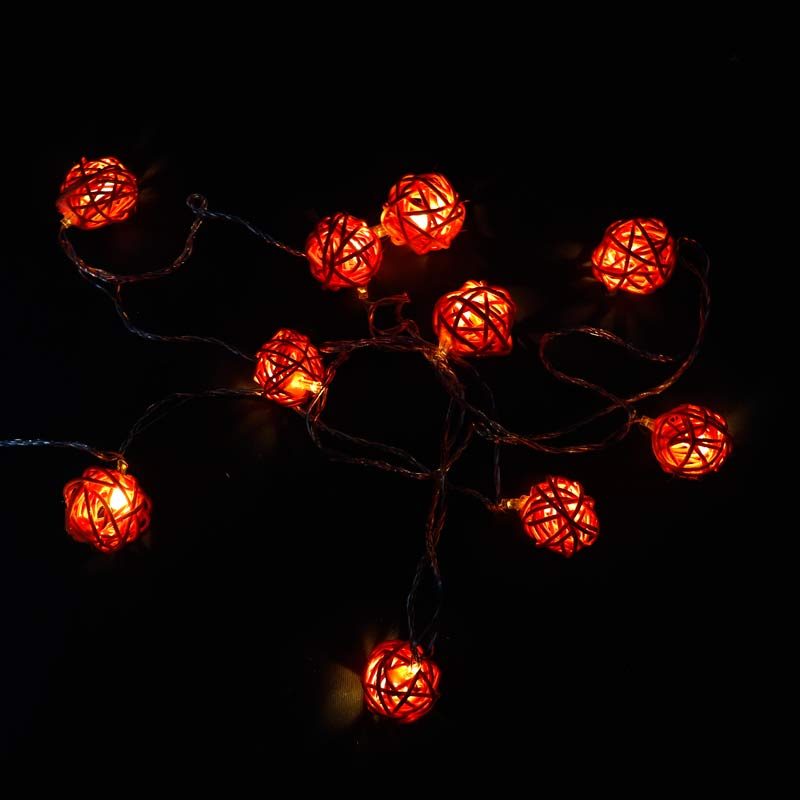 ریسه 10 لامپ طرح گوی چوبی نارنجی آفتابی 2٫5 متری