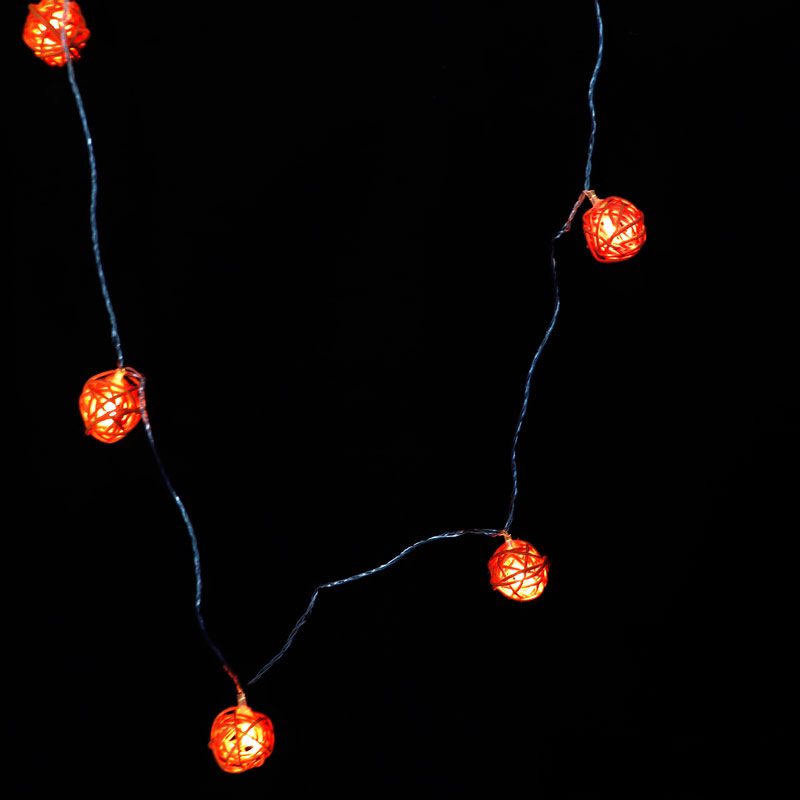 ریسه تزیینی ۱۰ لامپه طرح گوی چوبی نارنجی با طول ۲٫۵ متر آفتابی