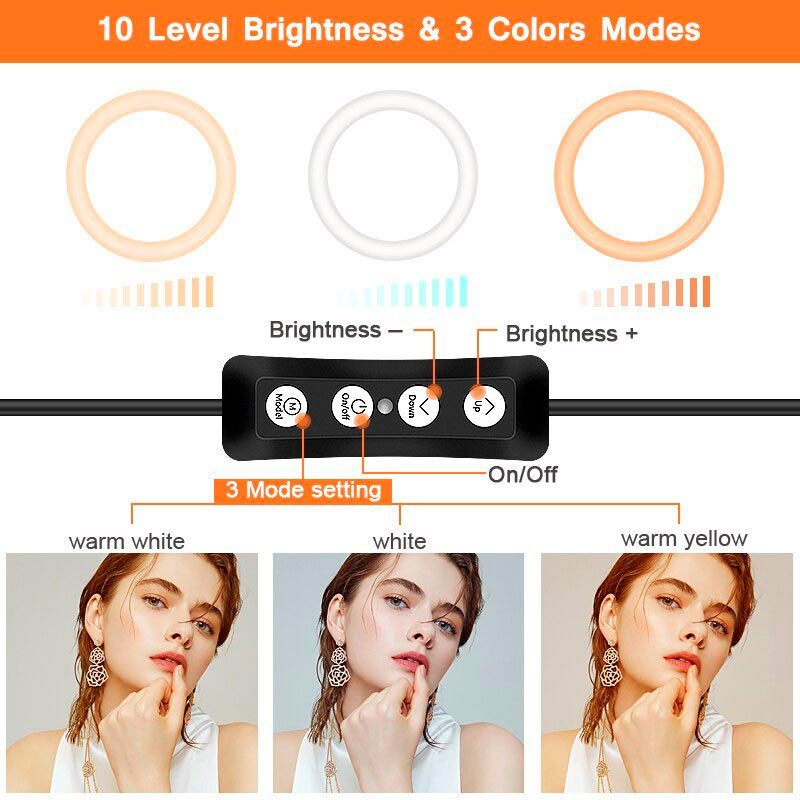بهره مندی از 128 عدد لامپ LED در سایز 10 اینچی، دارای قطر حلقه 26cm، دمای رنگ 2700 الی 5500 کلوین