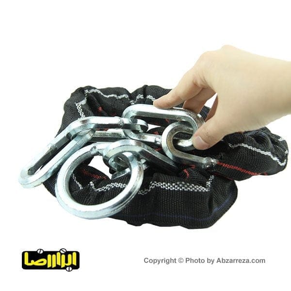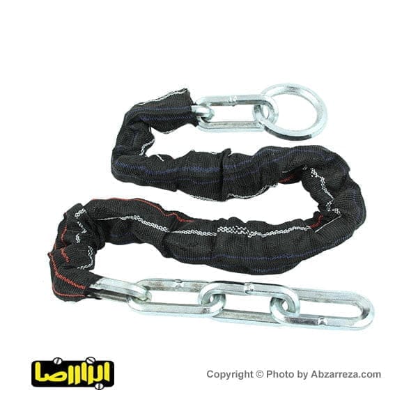 زنجیر فولادی روکشدار با طول 1 متر، ضخامت 10 میلیمتر، مقطع شش گوش و وزن 2.1 کیلو گرم جهت قفل کردن دوچرخه، موتور سیکلت و فرمان خودرو مورد استفاده قرار میگیرد.