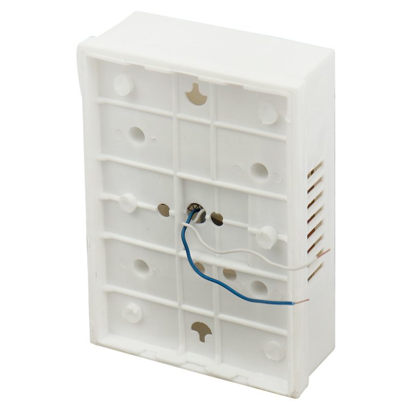 بدنه ساخته از پلاستیک مرغوب با محافظت در برابر انتقال جریان برق، رطوبت، نفوذ جسم های خارجی و … عملکرد عالی براساس ولتاژ ۲۲۰ ولت و دارای دو سیم برای اتصال به کلید زنگ و قابلیت نصب به شکل روکار