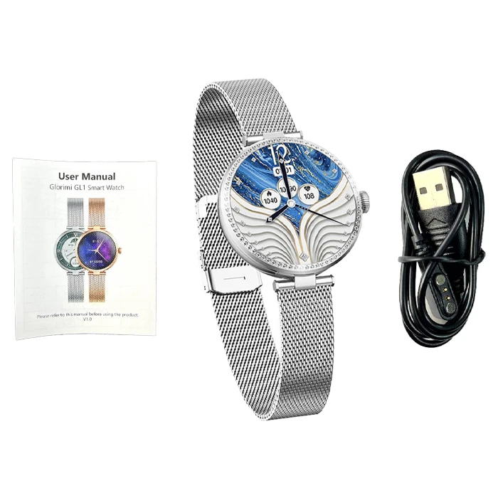 در بسته بندی این محصول، علاوه بر ساعت Xiaomi Glorimi GL1 یک عدد شارژر مگنتی، دفترچه راهنما قرار گرفته است.