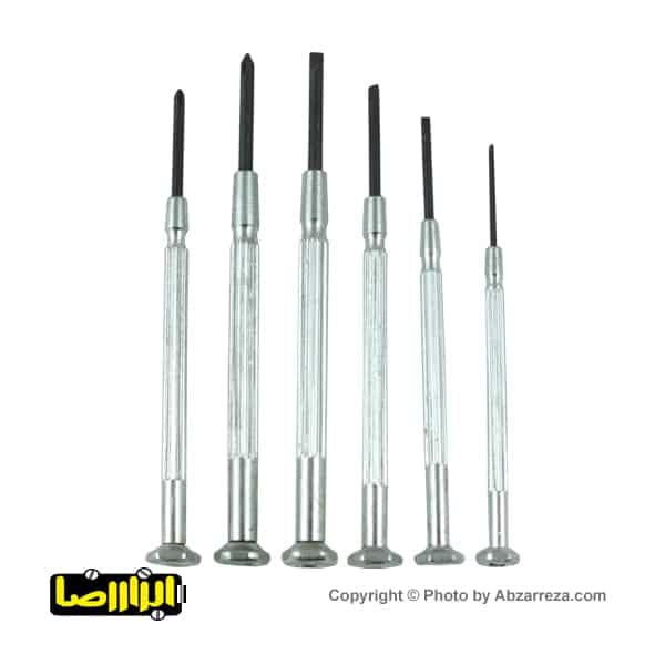 ست 6 عددی پیچ گوشتی ساعتی تولز ابزاری کاربردی برای باز و بسته کردن پیچ ساعت، پیچ عینک، دوربین، قرقره های ماهیگیری , … است. این ست پیچ گوشتی 6 عددی با میله‌ی سخت کاری شده و حرارت داده شده با آلیاژ کروم وانادیوم، دارای 4 عدد پیچ گوشتی دو سو در سایزهای 1.4، 2، 2.4 و 3 میلی‌متر و 2 عدد پیچ گوشتی چهار سو در سایزهای ph1 و ph0 میلی‌متر می‌باشد.