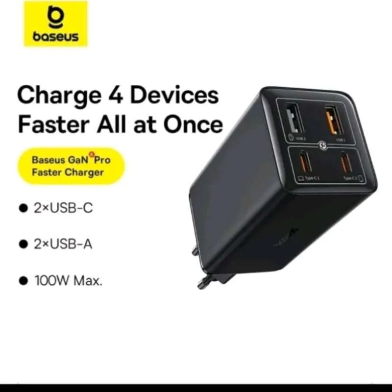 آداپتور شارژر فست شارژ Baseus GaN6 Pro Fast Charger 2C+2U 100W EU