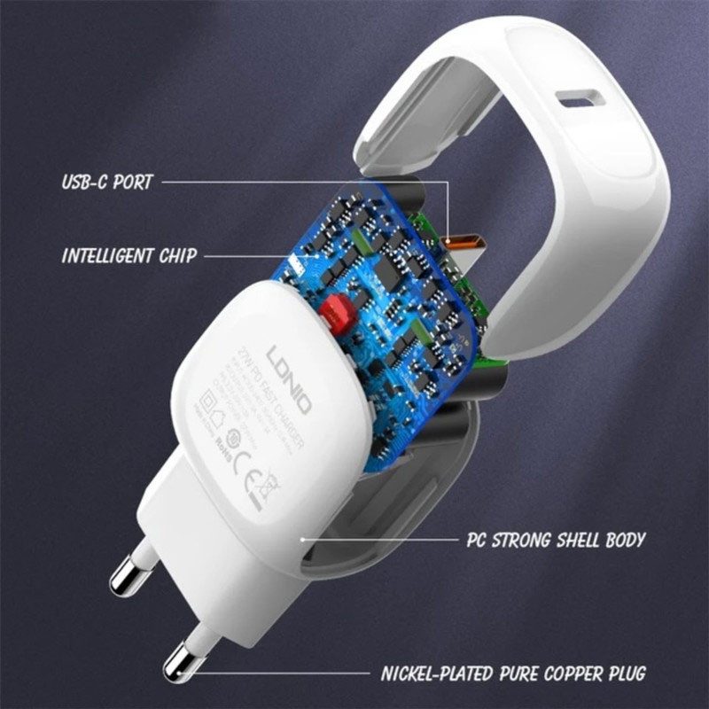 شارژر دیواری فست شارژ Ldnio A1206C 27W Type-C + کابل تبدیل تایپ سی