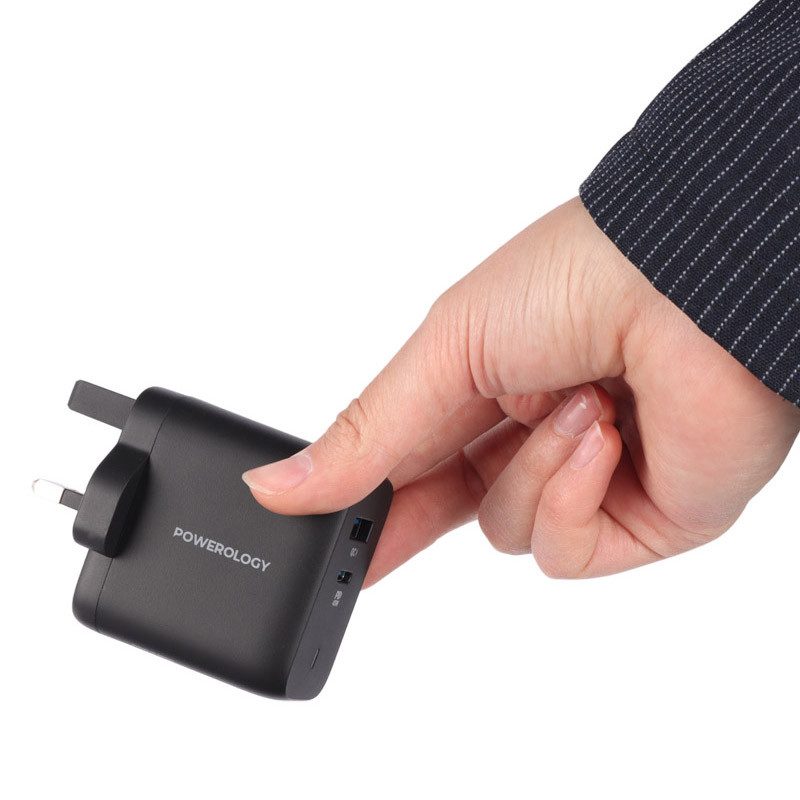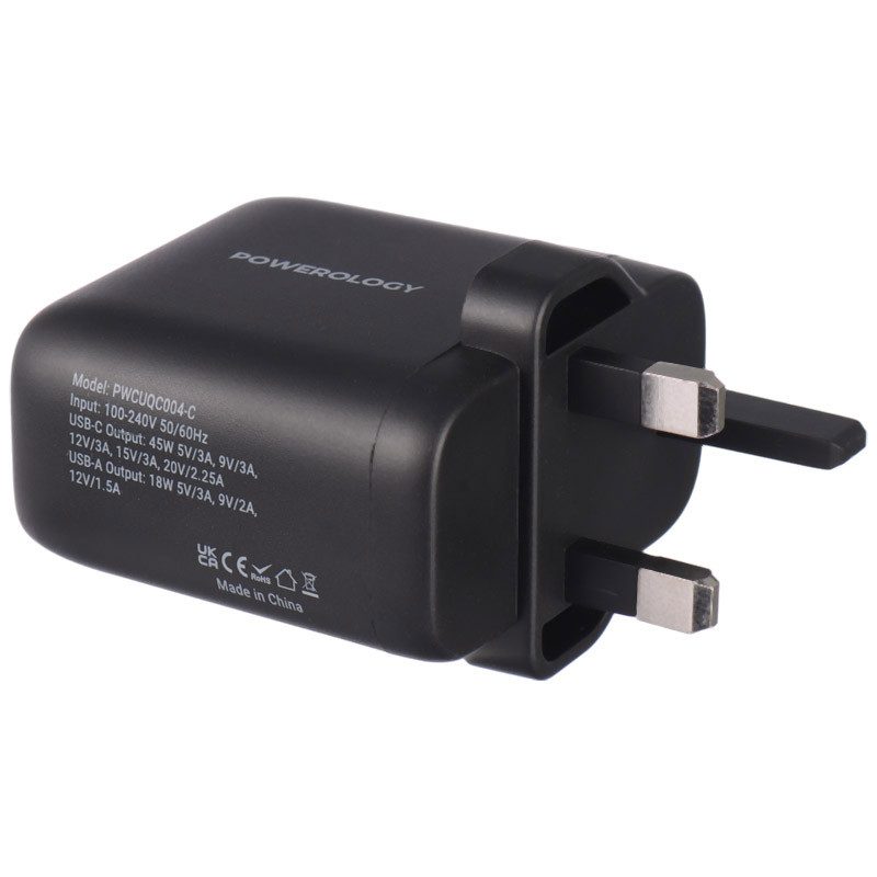 شارژر دیواری فست شارژ Powerology PWCUQC004-C 2Port QC3.0 PD 3A 45W + کابل تبدیل تایپ سی