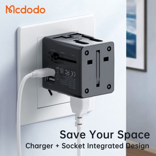 سوکت طراحی شده بر روی این شارژر دیواری با دو شاخه های EU، CN، UK، AU و US سازگاری دارد و شما را از تبدیل بی نیاز میکند. از این سوکت به منظور اتصال دستگاه هایی که نیازمند برق 220 ولت هستند، استفاده میشود.