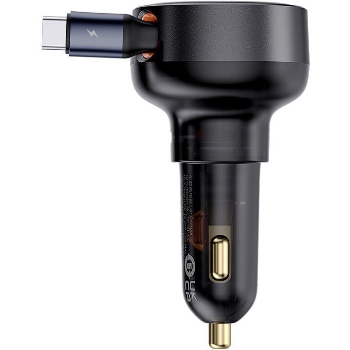 جنس بدنه ی شارژر فندکی Baseus cctxp-ccl از ترکیبی از ABS و پلی کربنات ساخته شده که مقاومت بالایی به این محصول میبخشد. ابعاد این شارژر فندکی 84*46*49 میلی متر و وزن آن 85 گرم است. در نتیجه به راحتی میتوانید همراه خود آن را به هر جایی جابهجا کنید. روی بدنه شارژ فندکی بیسوس 1 پورت Type-C و همچنین یک کابل متصل Type-c و یک کابل متصل لایتنینگ تعبیه شده که می توانید به صورت تکی و یا همزمان از این دو خروجی استفاده کنید. در شارژر فندکی بیسوس cctxp-ccl از رنگ مشکی براق استفاده شده که زیبایی خاصی به این محصول میبخشد.