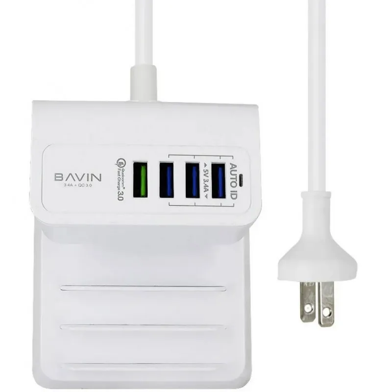 این شارژر 3 پورت USB و یک پورت از نوع QC 3.0 دارد. همچنین از برق شهری تغذیه می‌کند. جریان و ولتاژ ورودی‌ها و خروجی‌ها شارژر و استند باوین باوین Bavin PC393 به شرح زیر است: