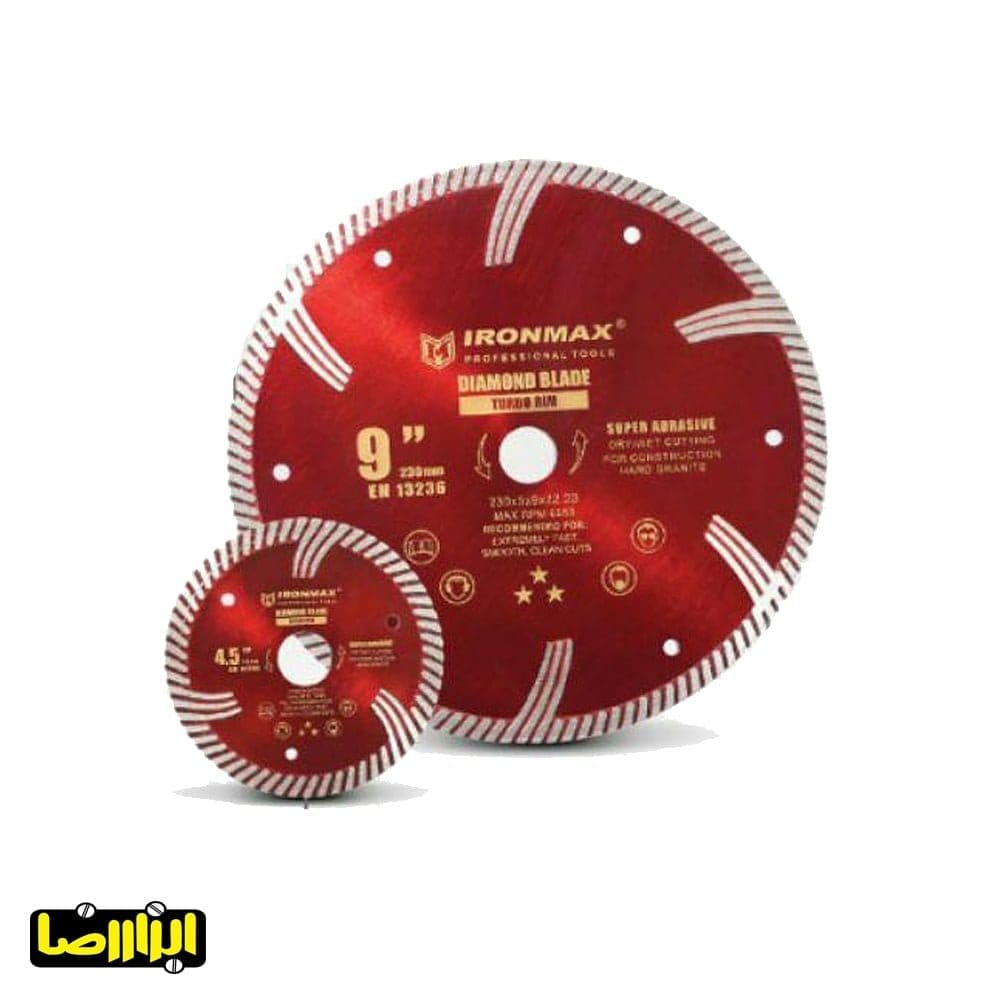 صفحه گرانیت بر توربو آیرون مکس از الماس باکیفیت بالایی تولید شده است. استفاده از الماس موجب افزایش کیفیت و طول عمر بیشتری نسبت به سایر متریال ها میشود. این محصول تولید شده با جدید ترین تکنولوژی تولید سگمنت جهت بالا بردن طول عمر هرچه بیشتر دیسک میباشد. از دیگر نکات قابل ذکر در مورد این صفحه گرانیت بر میتوان به تولید شده به روش HOT PRESS و همچنین شیارهای تعبیه شده در صفحه های برش جهت بالا بردن سرعت برش اشاره کرد. سگمنت های ضخیم و دارای سختی بالا این صفحه گرانیت بر موجب طول عمر هرچه بیشتر آن میشود و همچنین استاندارد EN 13236 از دیگر نکات قابل گفتن در مورد این محصول خواهد بود.