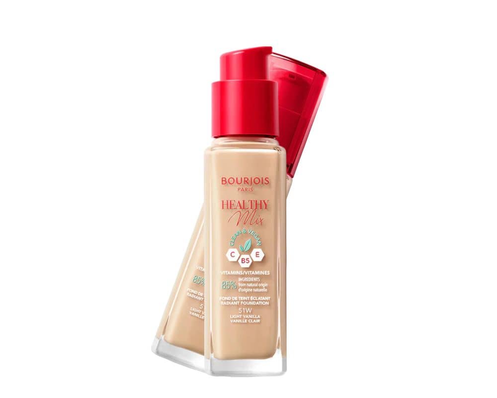 خرید آنلاین فاندیشن هلثی میکس بورژوا با رطوبت رسانی 24 ساعته حاوی عصاره میوه های سب و زردآلو با پوشش سبک و یکدست عیوب پوستی مناسب انواع پوست خسته و کدر