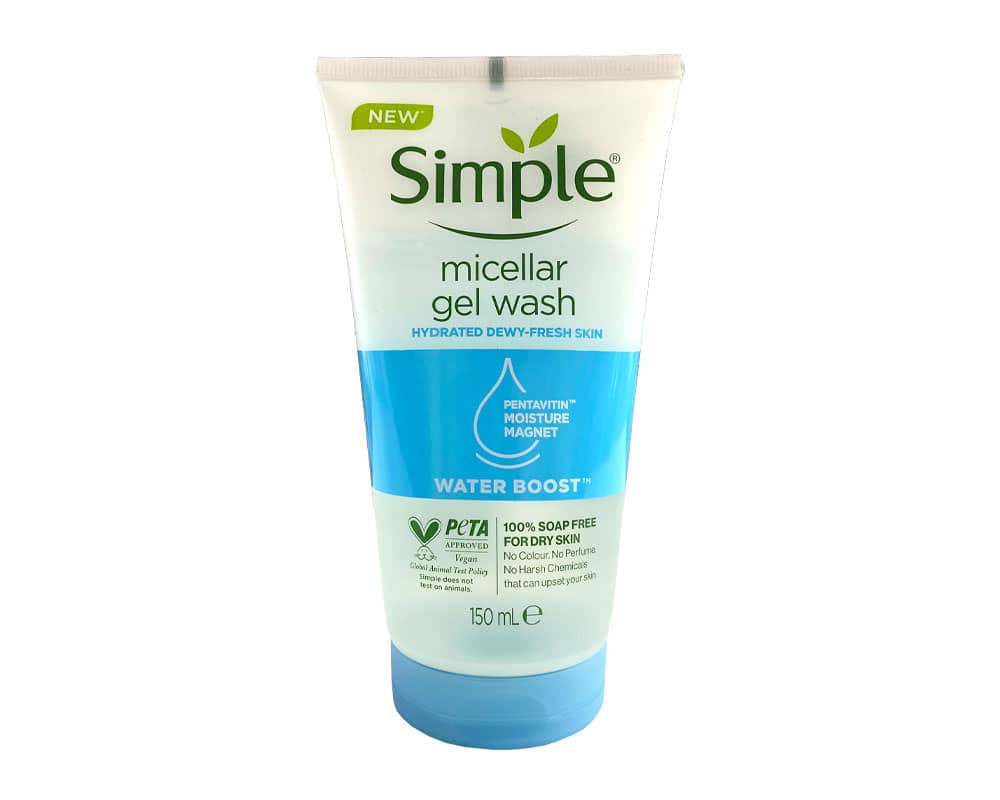 خرید آنلاین فیس واش میسلار سیمپل مدل واتر بوست مناسب برای پوست خشک و حساس بدون ایجاد حس کشیدگی پوست و بدون عطر و مواد خشن و مشتقات حیوانی