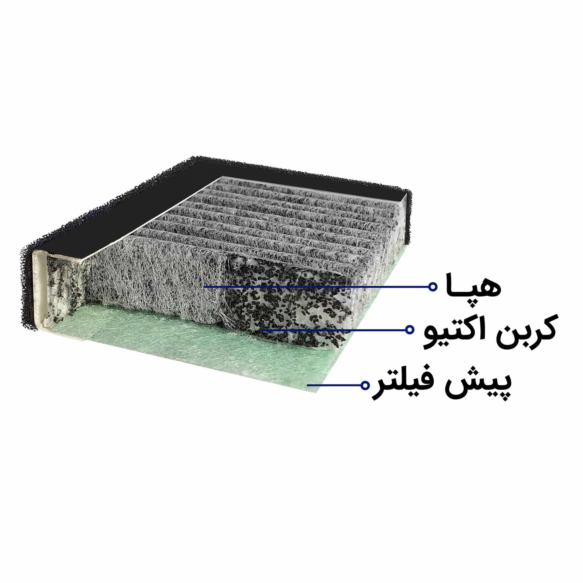 • فیلتر هپا (HEPA) جهت حذف ذرات ریز و آلاینده‌های معلق تا سطح PM 2.5
