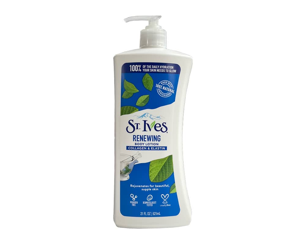 خرید اینترنتی لوسیون بدن کلاژن و الاستین سنت آیوز یک فرمول مرطوب کننده و بازسازی کننده پوست با بافت غیر چرب مناسب پوست حساس و جذب سریع