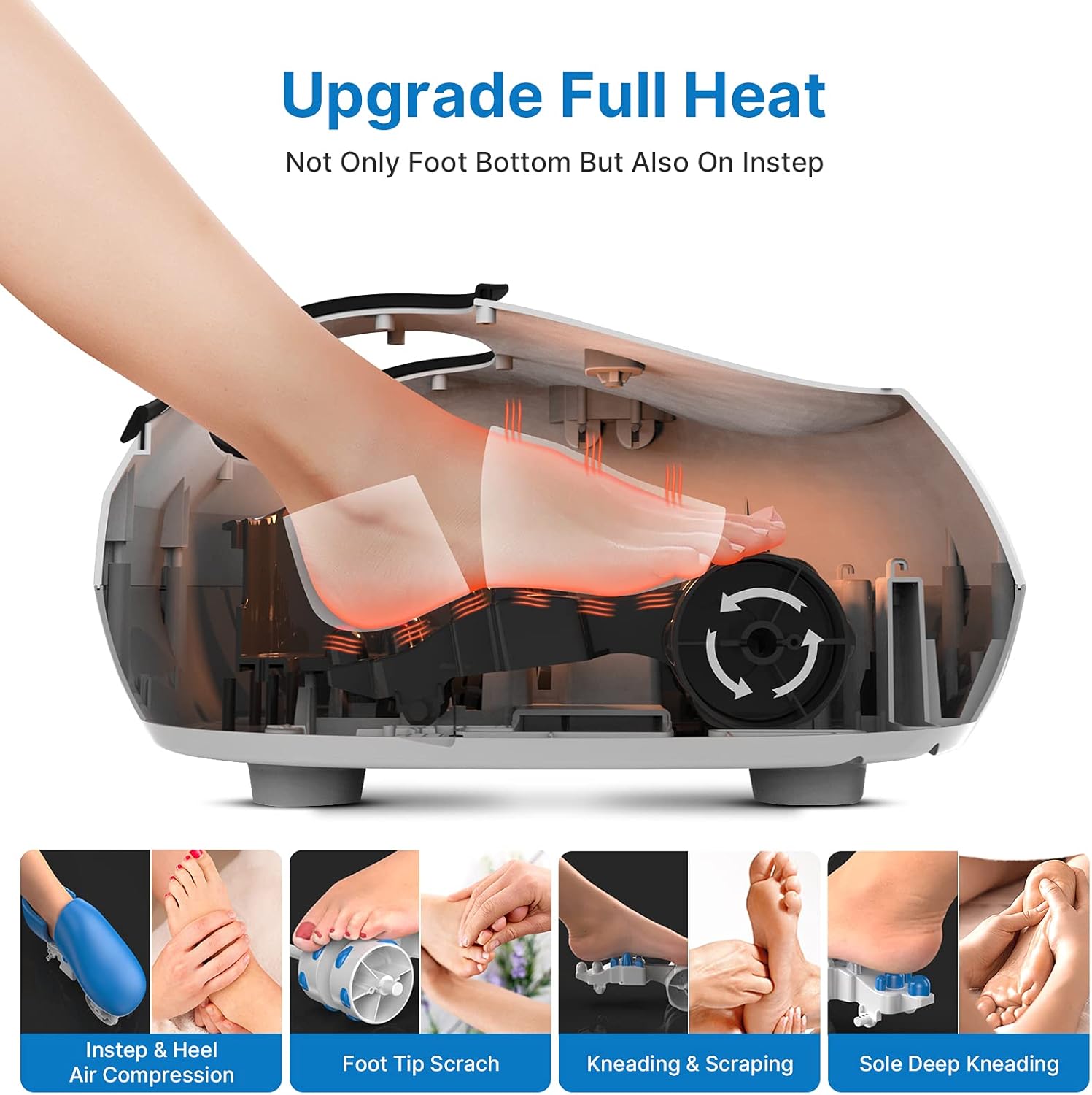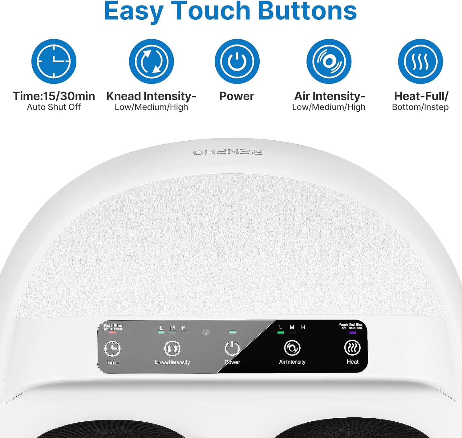 عملکرد گرمایش ارتقا یافته با 3 حالت: اکثر دستگاههای ماساژور پا در بازار فقط کف پا را گرم میکنند. ماساژور پای شیاتسو Renpho FM-079R با حالتهای گرمایش بیشتر ارتقا یافته است: کل پا، روی پا و کف پا. همچنین، این ماساژور پای برقی میتواند در 2-3 دقیقه به سرعت گرم شود. با کمک عملکرد گرمایش، ماساژ آرامشبخش عمیق برای کاهش درد و تنش عضلانی مؤثرتر خواهد بود. همچنین، عملکرد گرمایش آن را میتوان به طور مستقل کنترل کرد.