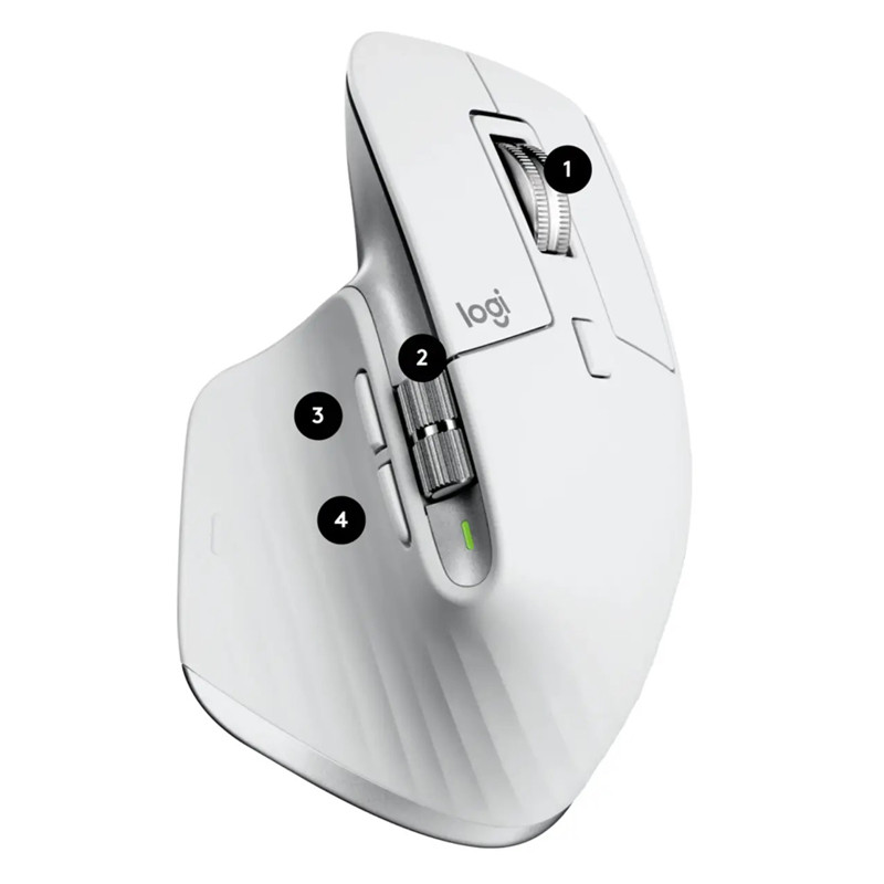 دارای 7 کلید فیزیکی و حسگر اپتیکال با دقت 200 الی 8000 نقطه بر اینچ به همراه قابلیت برنامه ریزی آن ها توسط برنامه  Logi Options