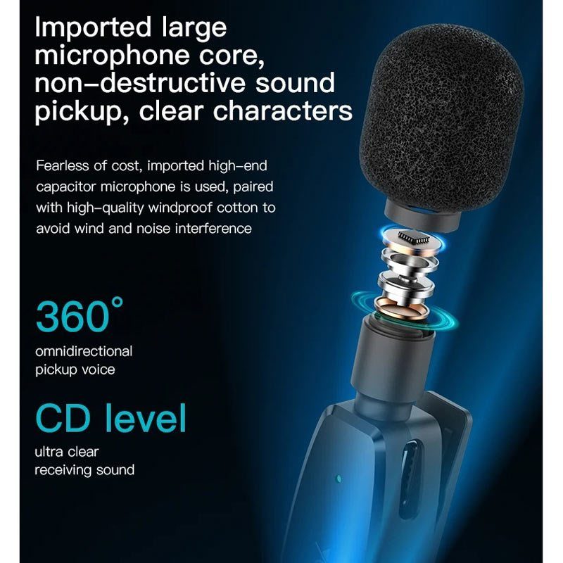 مجهز به گیره جهت اتصال بر روی یقه لباس، جیب و …، شامل دو عدد فرستنده و یک عدد گیرنده، مناسب جهت تولید محتوا و ضبط ویدئو، کلاس آنلاین و …