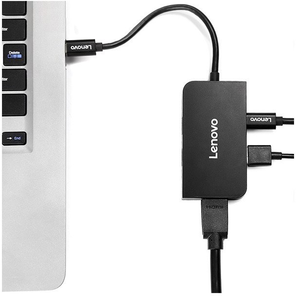 همانطور که از اسمش پیداست این تبدیل لنوو مجموعا دارای 5 پورت و 1 کانکتور است. وضعیت و نوع قرار گیری پورت ها به این قرار است.