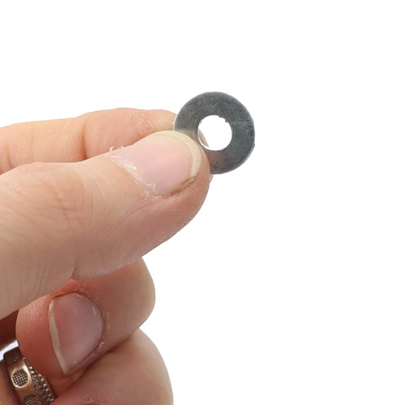 باعث تقسیم مناسب فشار بر روی قطعات متصل شده می شود تا از آسیب دیدن آنها جلوگیری کند. واشر تخت گرد با ضخامت ۱ میلی متر ساخته شده از جنس آهن گالوانیزه شده قطر سوراخ داخلی واشر : ۶ میلی متر قطر خارجی واشر : ۱۴ میلی متر