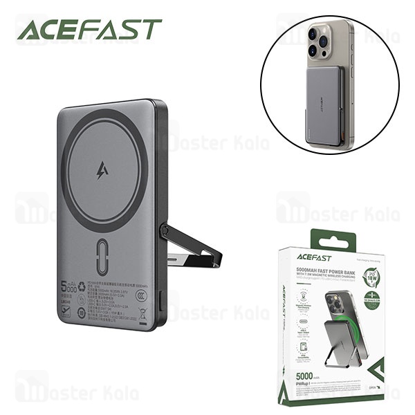 پاوربانک وایرلس فوق نازک 5000 مگنتی ایس فست ACEFAST M16 توان 18 وات دارای استند