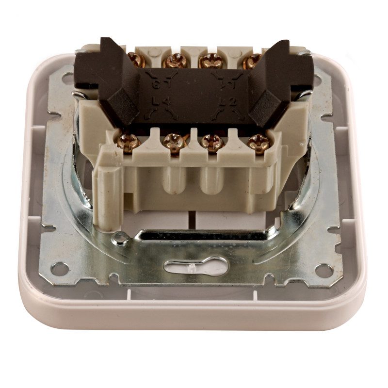 دارای دو سوکت تلفن برای اتصال به پریزبدنه ساخته شده از جنس پلاستیک و نصب به صورت توکار