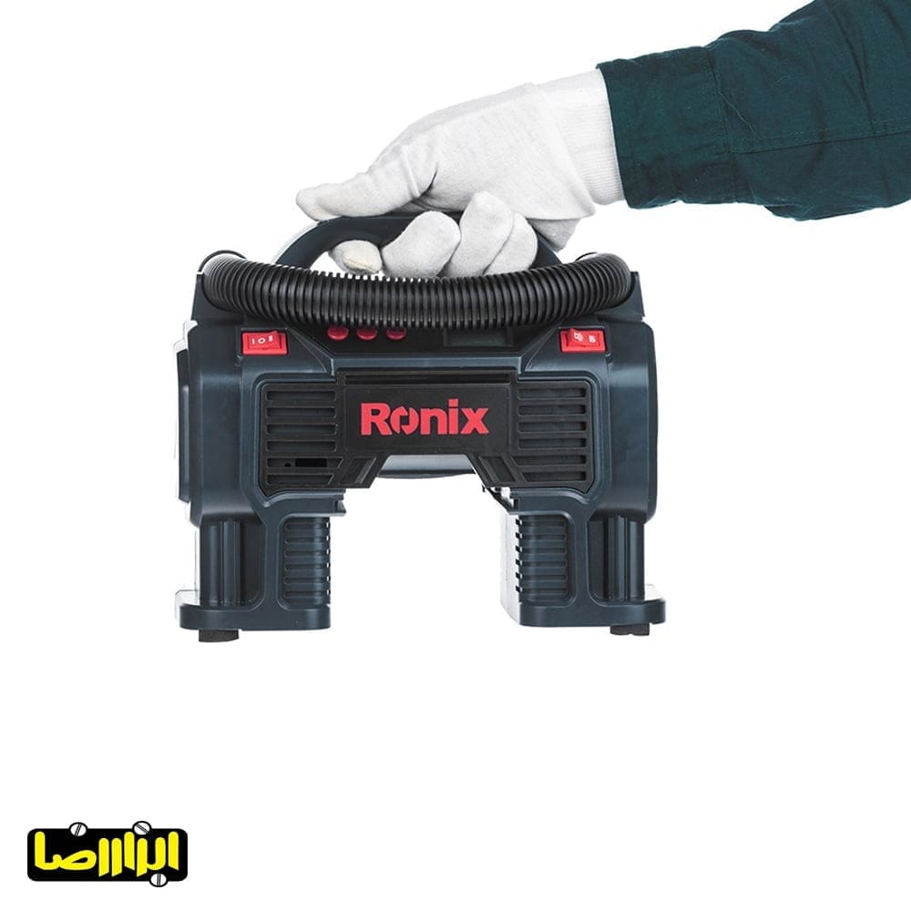 مینی پمپ باد سه کاره فندکی رونیکس مدل RH-4260 دارای فشار هوا خروجی 400 لیتر بر دقیقه و موتوری با 2 سیلندر است .
