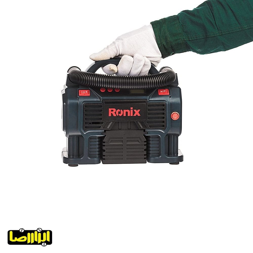 مینی پمپ باد رونیکس مدل RH-4261 دارای فشار هوا خروجی 400 لیتر بر دقیقه و موتوری با 2 سیلندر است .