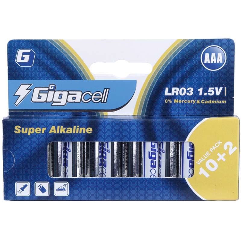 پک 2+10 نیم قلمی Gigacell Super Alkaline LR03 1.5V AAA
