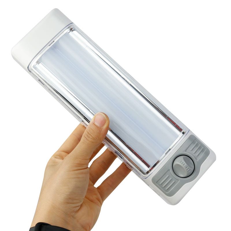 توجه : چراغ مذکور نیازمند شارژ اولیه بوده و از روشن کردن چراغ، همزمان با شارژ کردن آن خودداری نمایید. مجهز به کلید فیزیکی تنظیم میزان روشنایی و دارای کلید روشن و خاموش دارای ۳۶ عدد لامپ SMD با نور مهتابی، تأمین انرژی از طریق برق شهری و دارای درگاه ورودی شارژر پنل خورشیدی باتری از نوع Lead-Acid با ظرفیت ۱۵۰۰ میلی آمپر ساعت و کارکرد و شارژدهی تا حداکثر ۸ ساعت دارای دسته برای حمل آسان چراغ قوه و قابلیت نصب روی دیوار