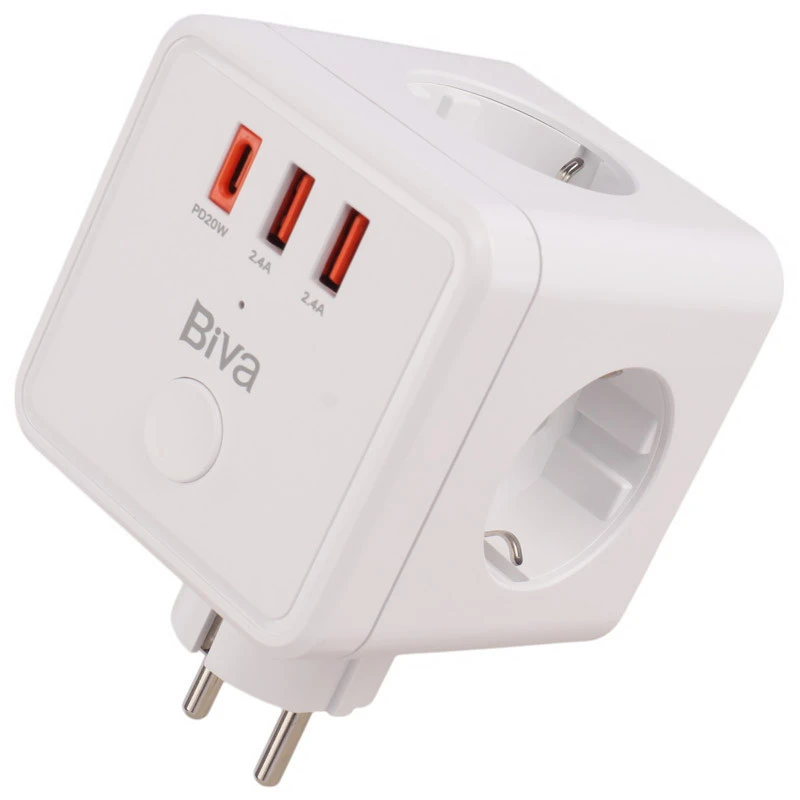 چند راهی برق و شارژر بیوا PS-07 یک محصول همه‌کاره است. با خرید این کالای برند بیوا شما هم یک چند راهی با 3 پریز برق خواهید داشت؛ هم یک شارژر که تا 3 وسیله الکترونیکی شما مثل گوشی یا ساعت هوشمند را همزمان شارژ می‌کند و هم دیگر از بابت نوسانات برق هیچ نگرانی لازم نیست داشته باشید. همچنین طراحی پریزهای برق به نحوی بوده که هیچ کدام از دو شاخه‌ها با یکدیگر تداخل نداشته باشند.