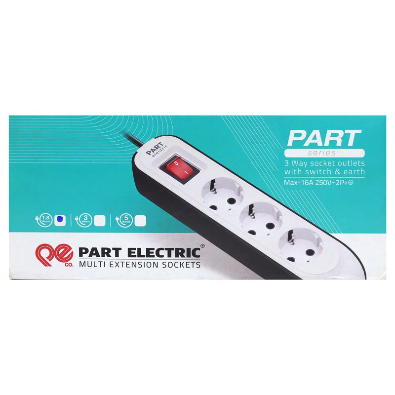 چند راهی 3 خانه ارت دار پارت الکتریک با کابل 1٫8 متر مدل PE8760