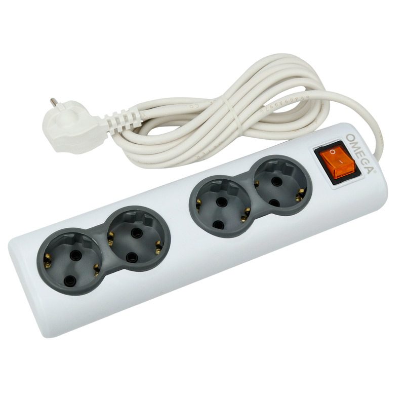 چند راهی ۴ خانه برق ارت دار امگا R4000 با کابل ۳ متری
