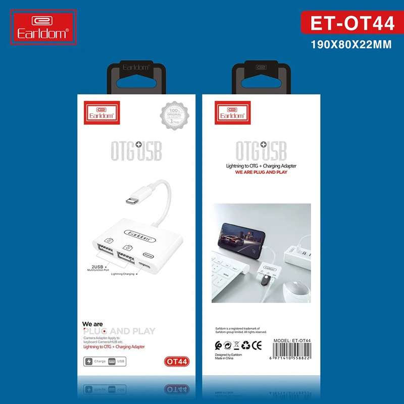 او تی جی ها در واقع تبدیلهایی هستند که میتوانند درگاه گوشی شما را به USB تبدیل کنند. با درگاه یو اس بی شما میتوانید به راحتی به انتقال اطلاعات و فایل بپردازید و فلش مموری خود را به گوشی متصل کنید. کمپانی Earldom با ساخت تبدیل OTG لایتنینگ به USB ارلدام OT44 این امکان را به وجود آورده است تا دیگر برای انتقال اطلاعات به گوشی نیازی به کامپیوتر نداشته باشید.