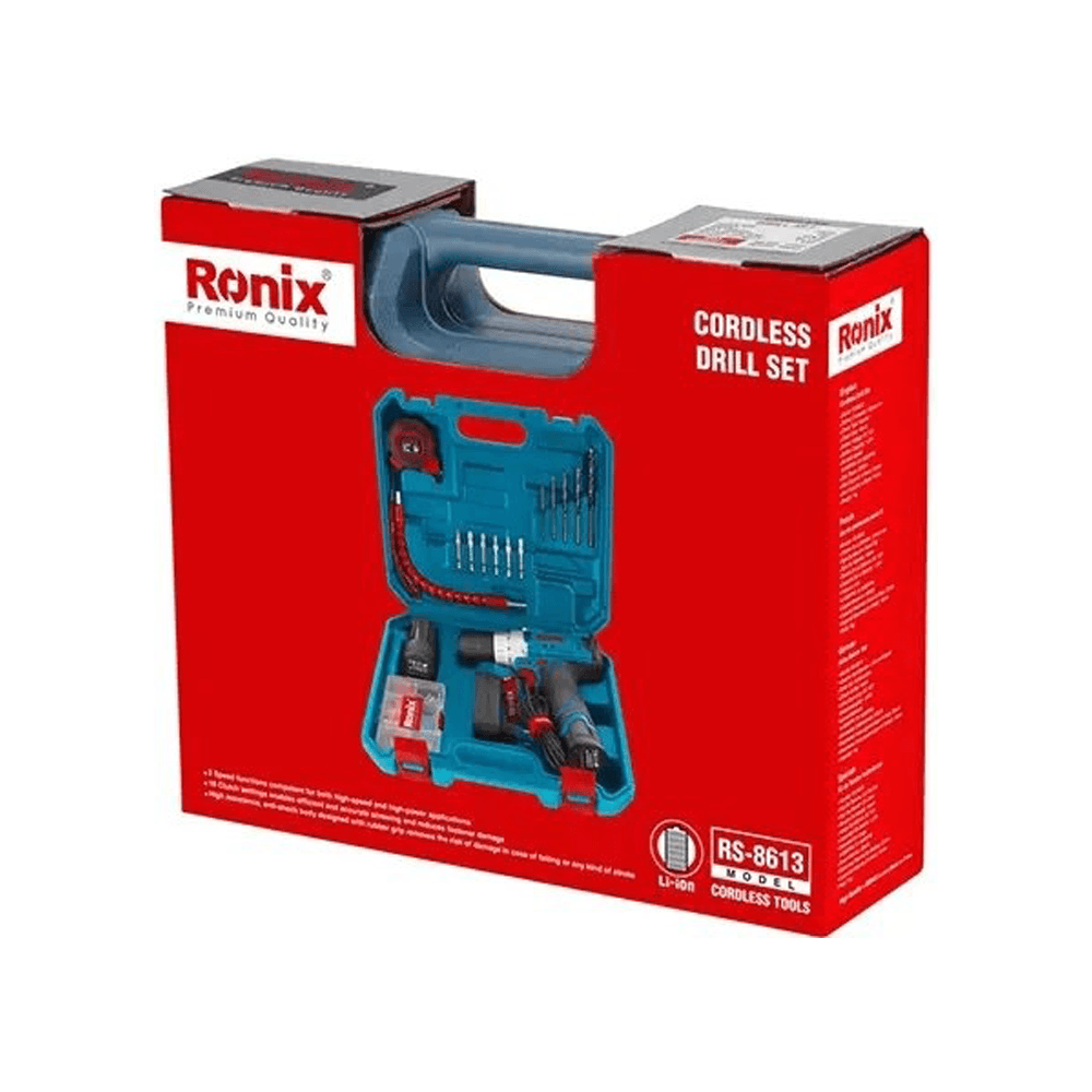 کیت دریل پیچ گوشتی شارژی رونیکس 12 ولت مدل RS-8613 دو باتری