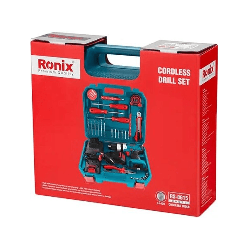 کیت دریل پیچ گوشتی چکشی شارژی رونیکس 16 ولت مدل RS-8615 دو باتری