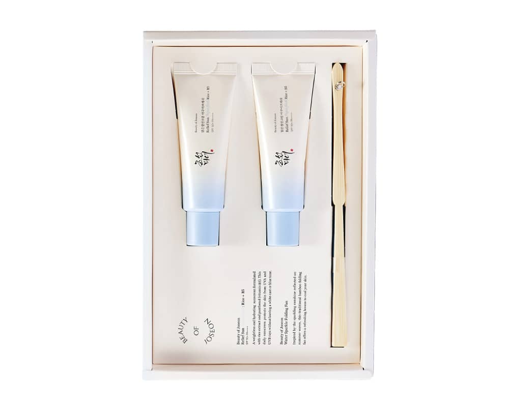 خرید اینترنتی کیت ضد‌آفتاب آکوا فرش بیوتی‌آف‌جوسان حاوی دو عدد ضد‌آفتاب ریلیف سان آکوا‌فرش بیوتی‌آف‌جوسان همراه با یک بادبزن تز جنس چوب بامبو