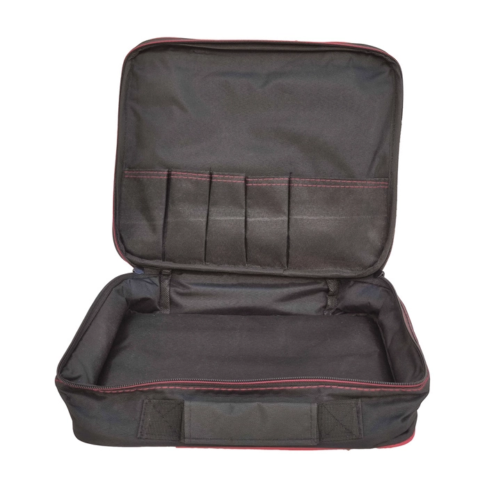 کیف دریل بوجار 35 سانتی متری برای حمل و نقل دریل و ابزارآلات جانبی آن مناسب میباشد. این کیف ابزار از جنس پارچه مستحکم ضد آب (جودان پشت پی وی سی) است و قابلیت شستشو دارد. کیف دریل بوجار 35 سانتی متری دارای طراحی منحصر به فرد میباشد و جیبهای متعدد آن برای جایگذاری ابزارآلات مختلف و دسترسی آسان به هر یک از ابزارآلات طراحی شده و جهت جلوگیری از صدمه در اثر ضربه در داخل کار از فوم استفاده شده است.