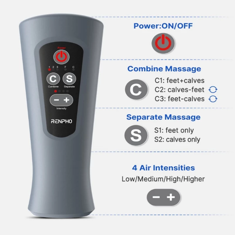 سیستم فشردهسازی هوا: دارای سیستم فشردهسازی هوا است که با اعمال فشار ملایم بر روی پاها، گردش خون را بهبود بخشیده و ورم را کاهش میدهد. این ویژگی به ویژه برای افرادی که ساعات طولانی را روی پا هستند، بسیار مفید است.