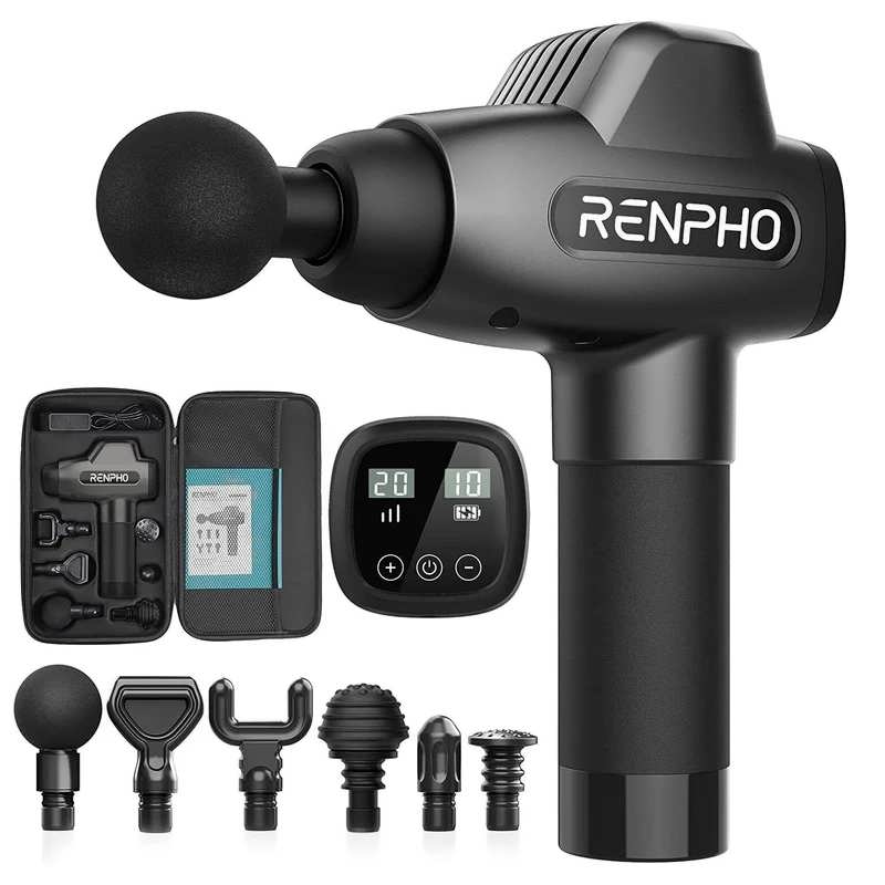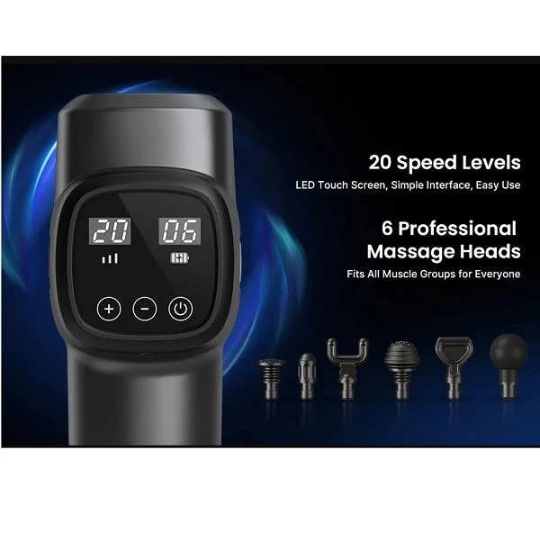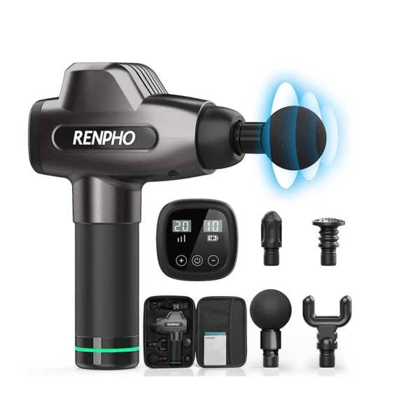 ماساژور تفنگی رنفو دارای یک صفحه نمایش لمسی است که میزان شارژ باتری، سرعت و حالت ماساژ را نشان میدهد. این صفحه نمایش به شما امکان میدهد تا به راحتی تنظیمات دستگاه را کنترل کنید.
