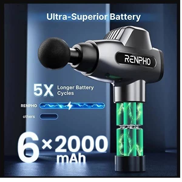 باتری لیتیوم یون رنفو با ظرفیت 2500 میلیآمپر ساعت، تا 8 ساعت کارکرد مداوم را برای شما فراهم میکند. این به این معنی است که شما میتوانید بدون نیاز به شارژ مجدد، از ماساژور خود در طول روز استفاده کنید.